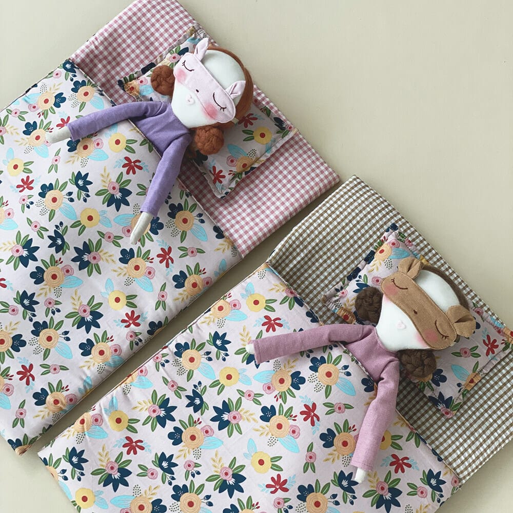 Peerly’s dolls love catching their Z’s in this cozy sleeping bag! Handmade with cotton, this doll-sized sleeping set is a fun addition to your Peerly’s collection. Suitable for sock girls and rag dolls, and includes a sleeping bag (50x35cm), pillow and eye mask. Dolls and pajamas are not included.